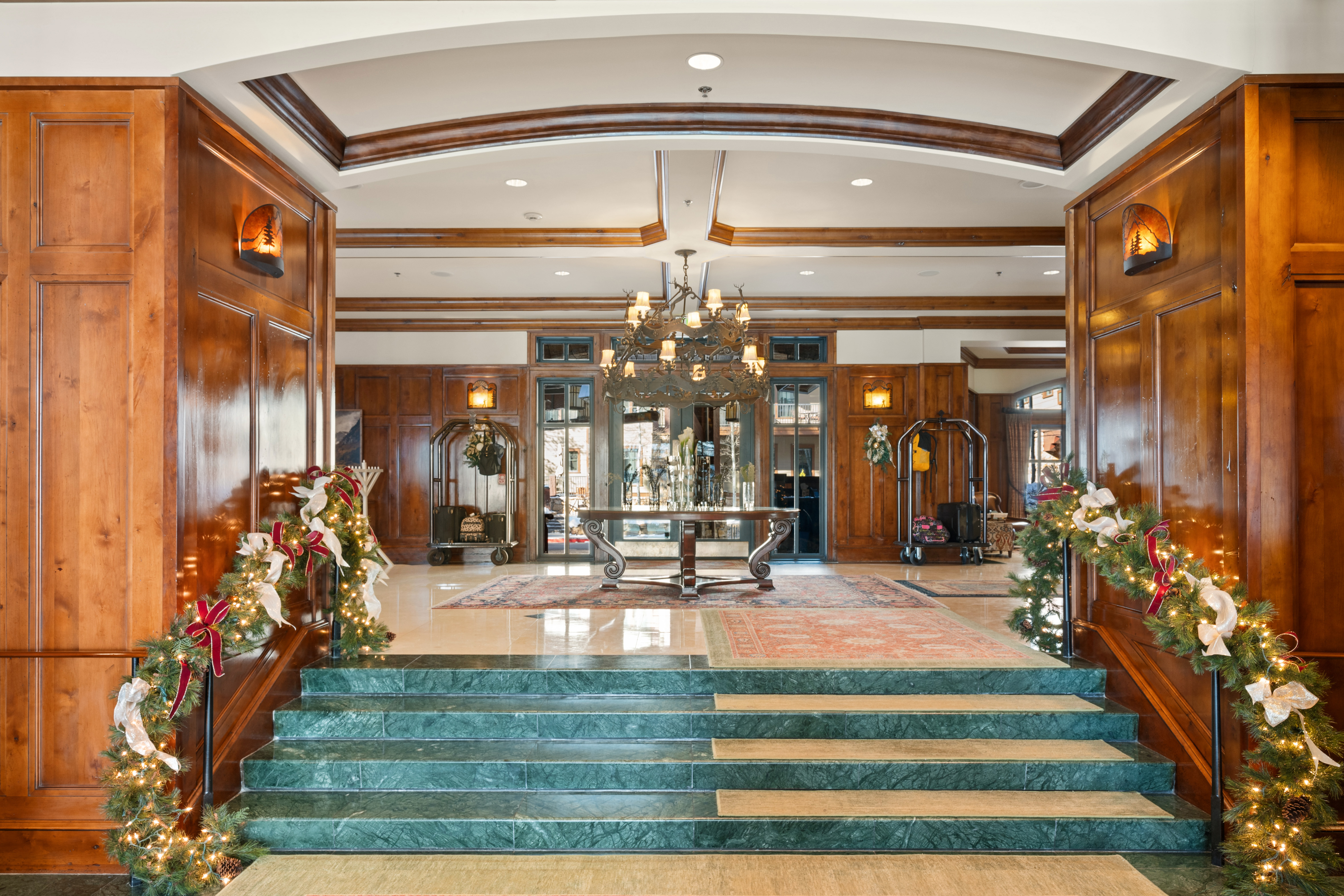 The Ritz-Carlton Club at Aspen Highlands offers luxury mountain accommodations in spacious two and three-bedroom condominiums only steps from the ski lifts. Each residence lives like a luxury home, with warm wood finishes and rich leather couches complemented by a natural stone fireplace. Spacious living areas and kitchens are ideal for entertaining. Luxurious primary bedrooms feature Frette linens, flatscreen TVs, and primary bathrooms with heated Italian marble floors and double vanities. Guests enjoy air conditioning and complimentary Wi-Fi in all rooms